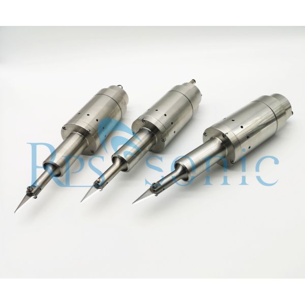 The ultrasonic cutting device is composed of an ultrasonic transducer, a casing, a cutting blade and ultrasonic power supply. Ultrasonic energy generate energy with tens of millions of vibrations, and the cutting edges are bonded at the same time, so the cutting points will not produce burrs or abrasions like conventional cutting, and the cutting edges will be very flat. It can cut a variety of products that are difficult to cut with common tools, solving production and processing problems.